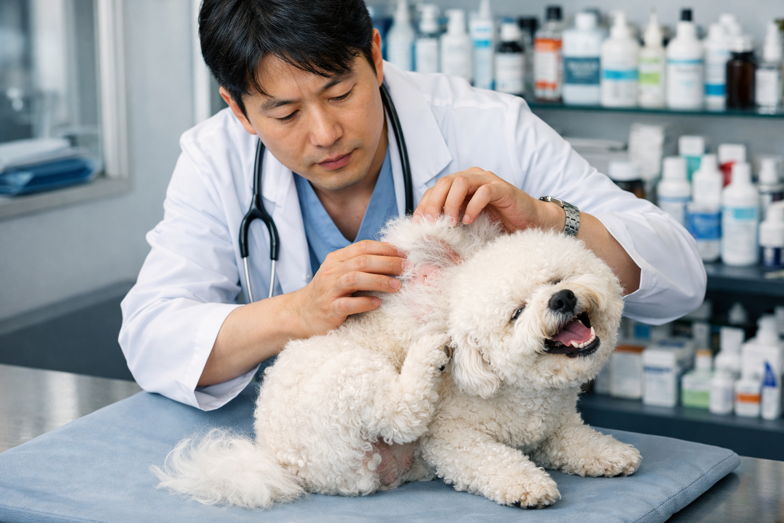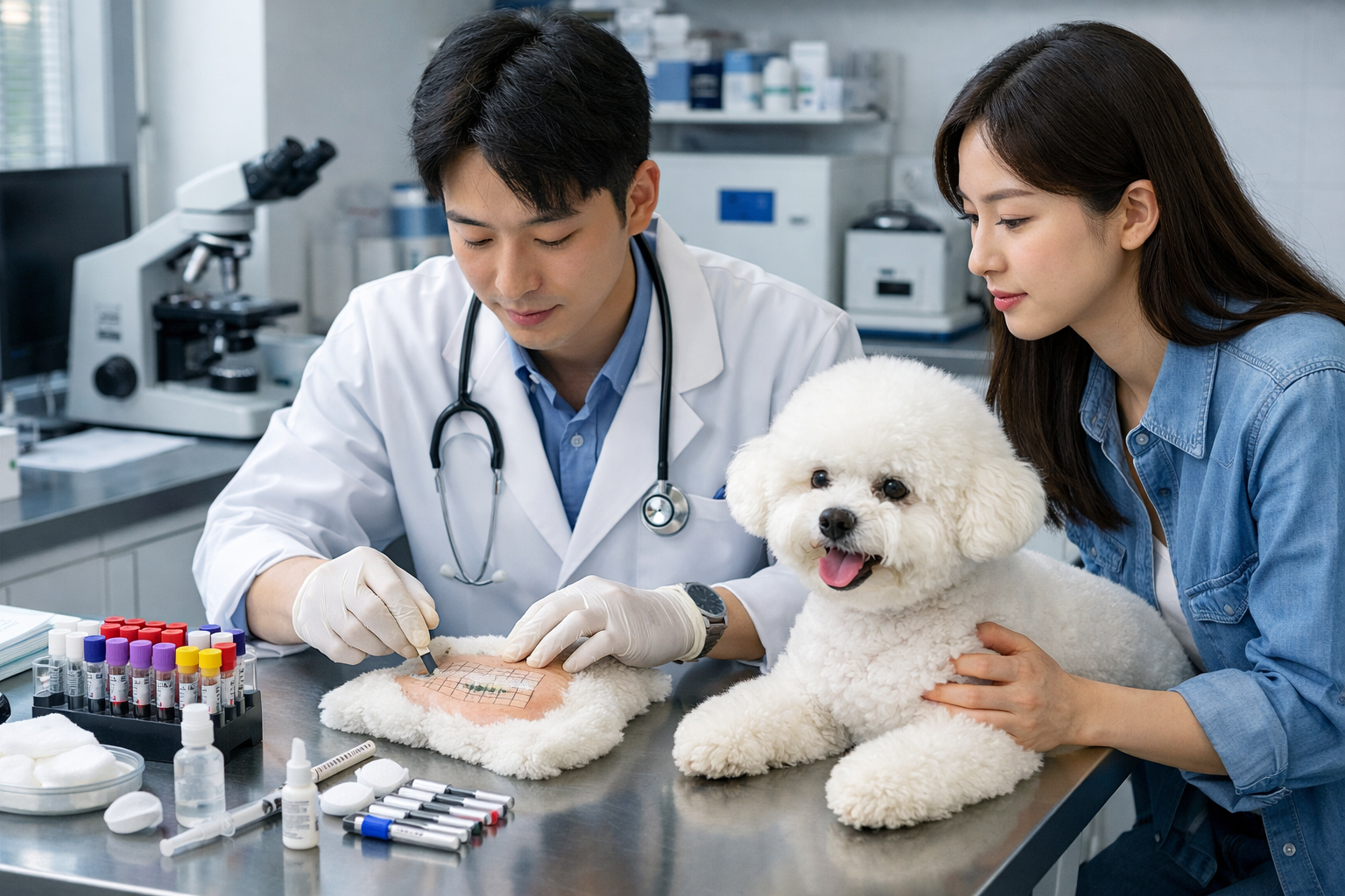⚠️ 10살 비숑프리제 코코는 6개월 동안 피부염으로 고통받았습니다. 여러 치료에도 효과가 없었지만, 강남동물의료센터에서 알레르기 진단을 받고 맞춤형 사료로 교체한 결과 4주 만에 증상이 완화되었습니다.